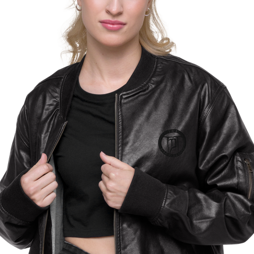 Kunstleder-Bomberjacke Damen - Wappen gestickt, black on black