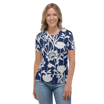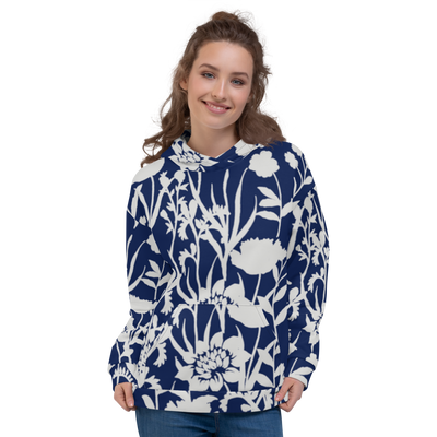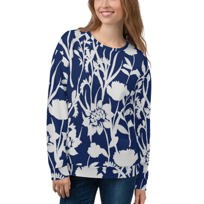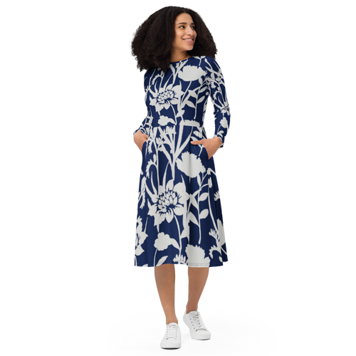 Langärmliges Midikleid mit Taschen - Blaue Blume