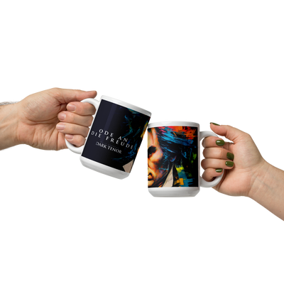 Weiße, glänzende Tasse - Ode an die Freude - Pommesgabel