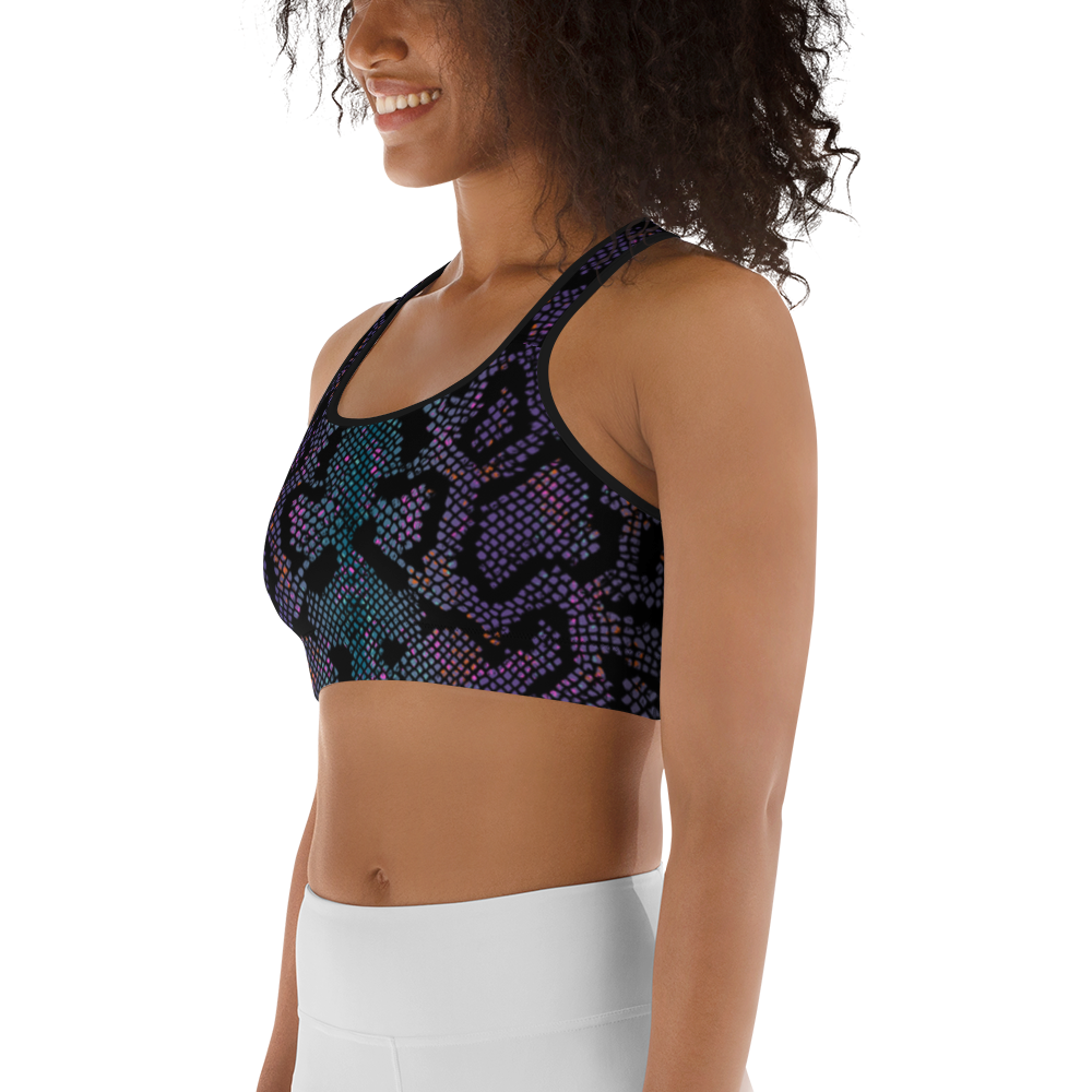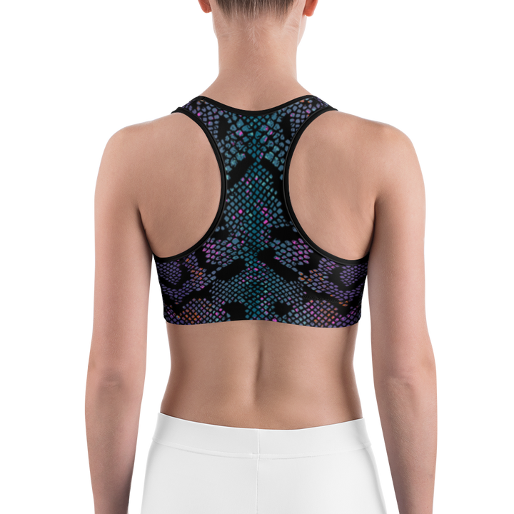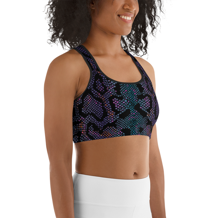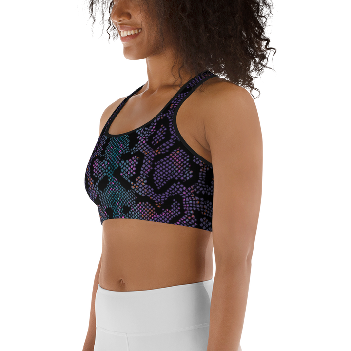 Denne smukke sports-bh er lavet af fugttransporterende materiale, der forbliver tør under let og moderat intens træning. BH'en har støttemateriale i skulderstropperne, dobbelt lag foran og et bredt elastikbånd for at sikre konstant støtte.