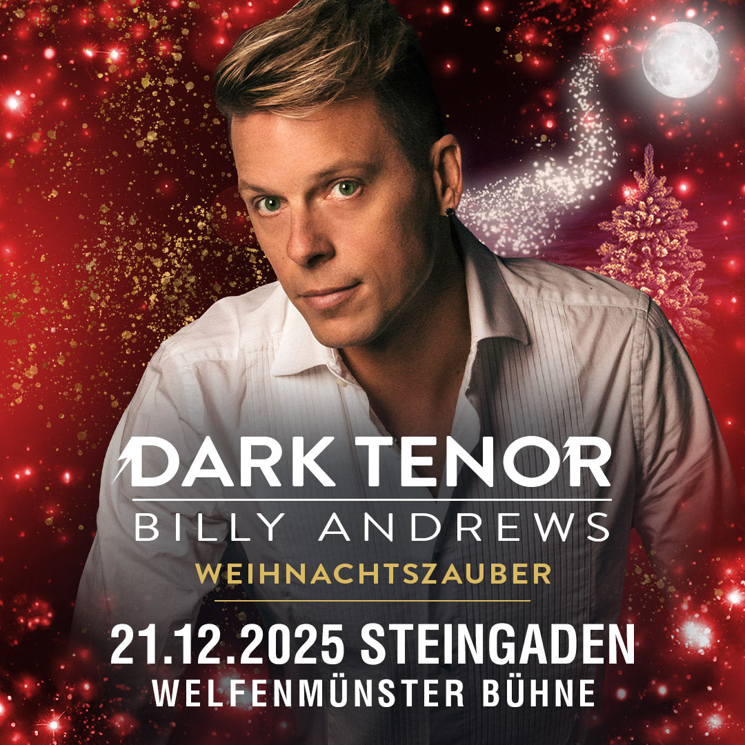 Der Tenor Billy Andrews kommt das erste Mal nach Steingaden! Begleitet von seinem Pianisten und Cellisten am 3D gedruckten Cello, ist jedes Weihnachtskonzert des ehemaligen Kreuzchor- und Opernsängers ein akustisches Erlebnis für Herz und Seele!