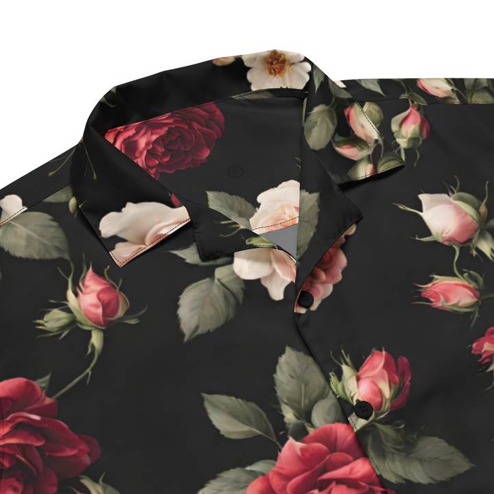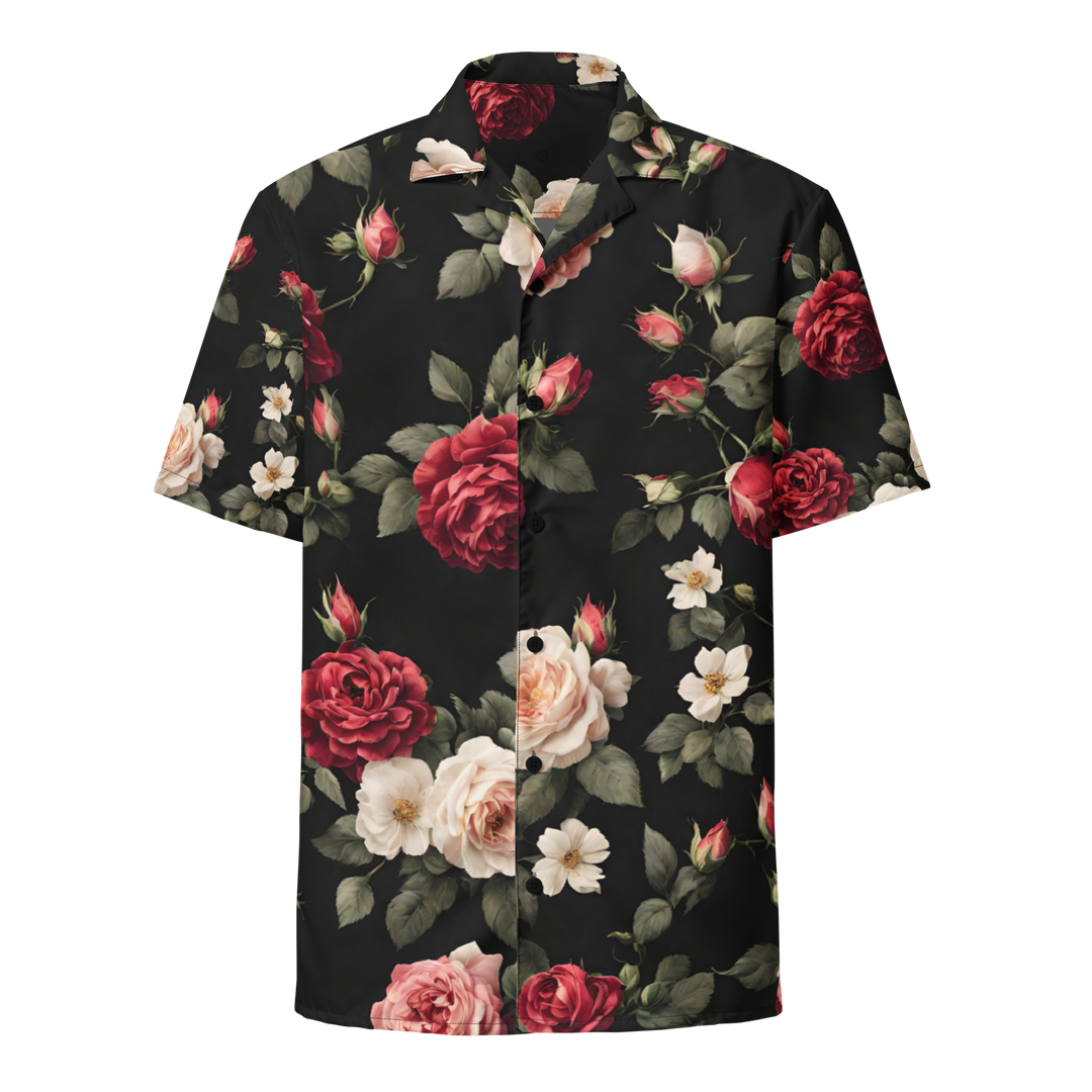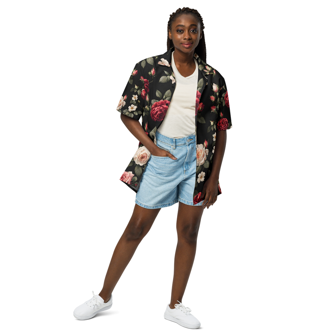 Skjorte med knapper unisex - Vintage Roses, sort