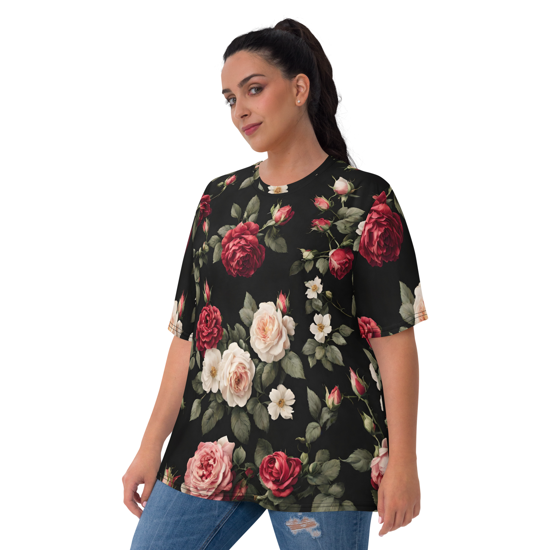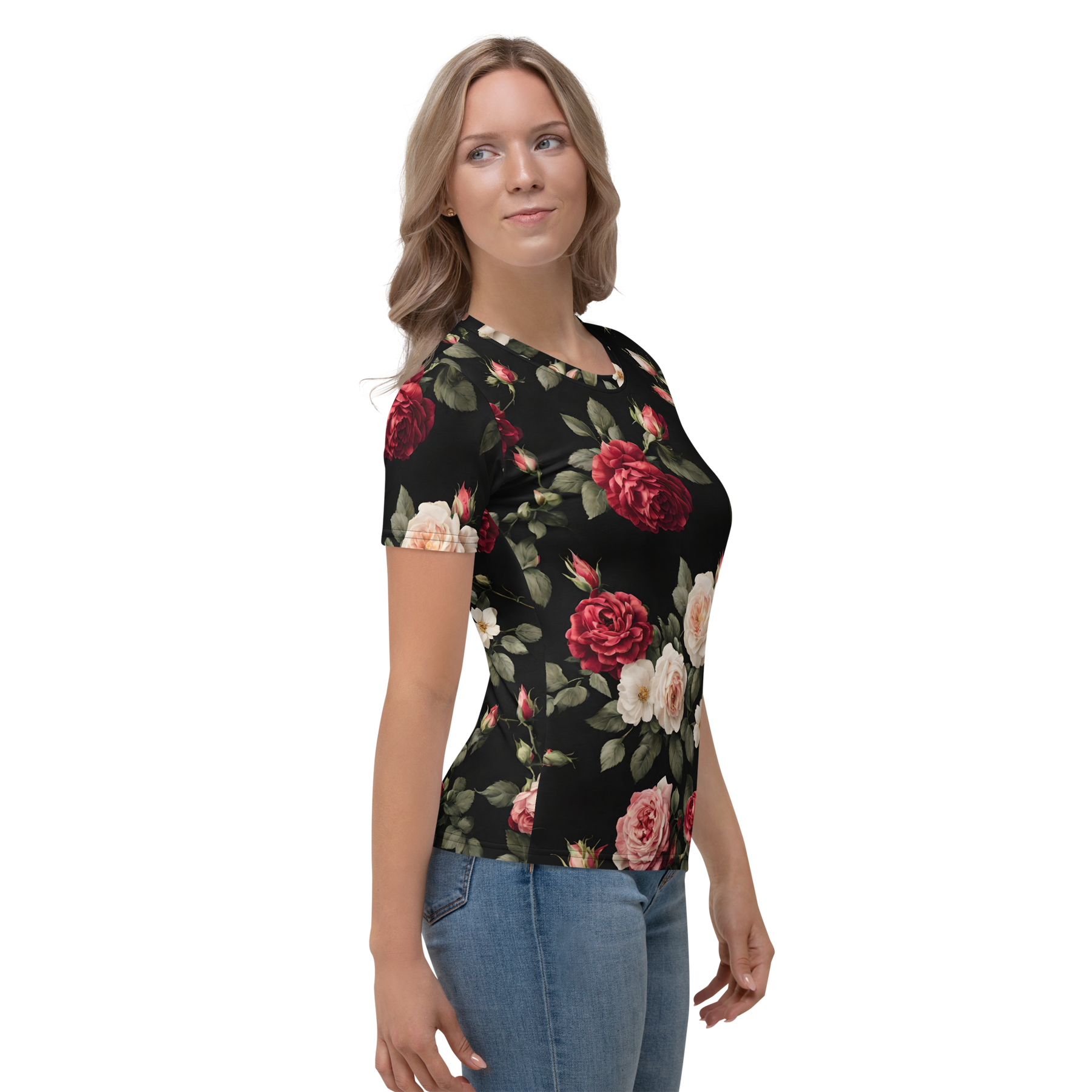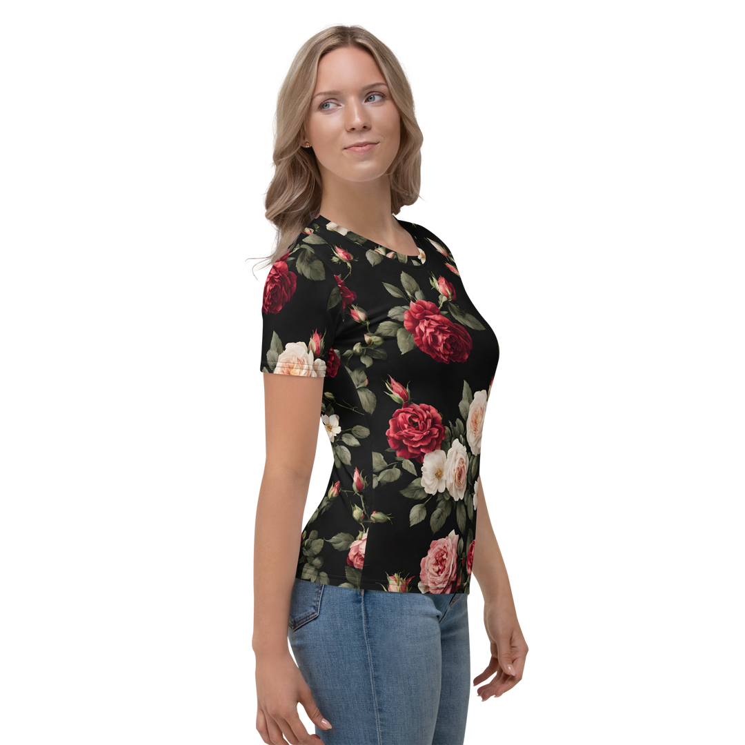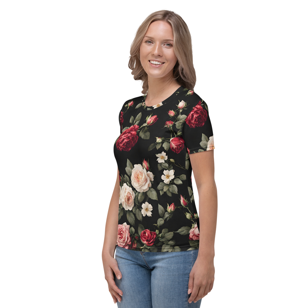 Premium T-shirt Damer - Vintage Roses, sort