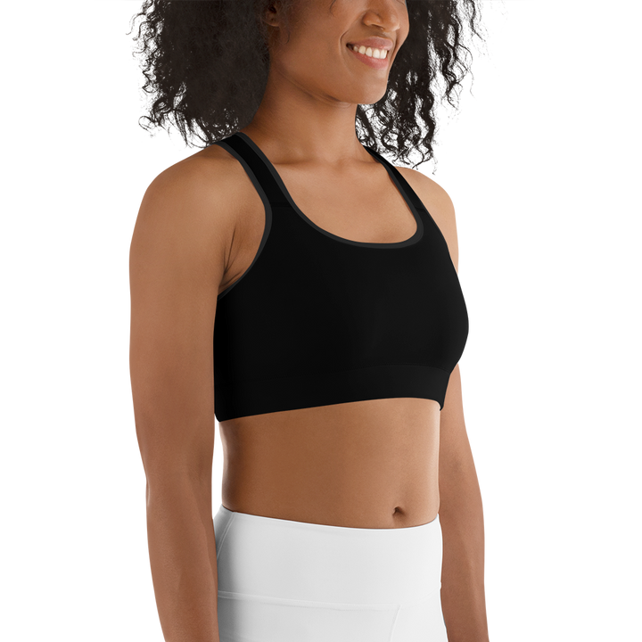This beautiful sports bra is made of moisture-wicking material that stays dry during light to medium intensity workouts. The bra has supportive material in the shoulder straps, a double layer front and a wide elastic band to ensure constant support.