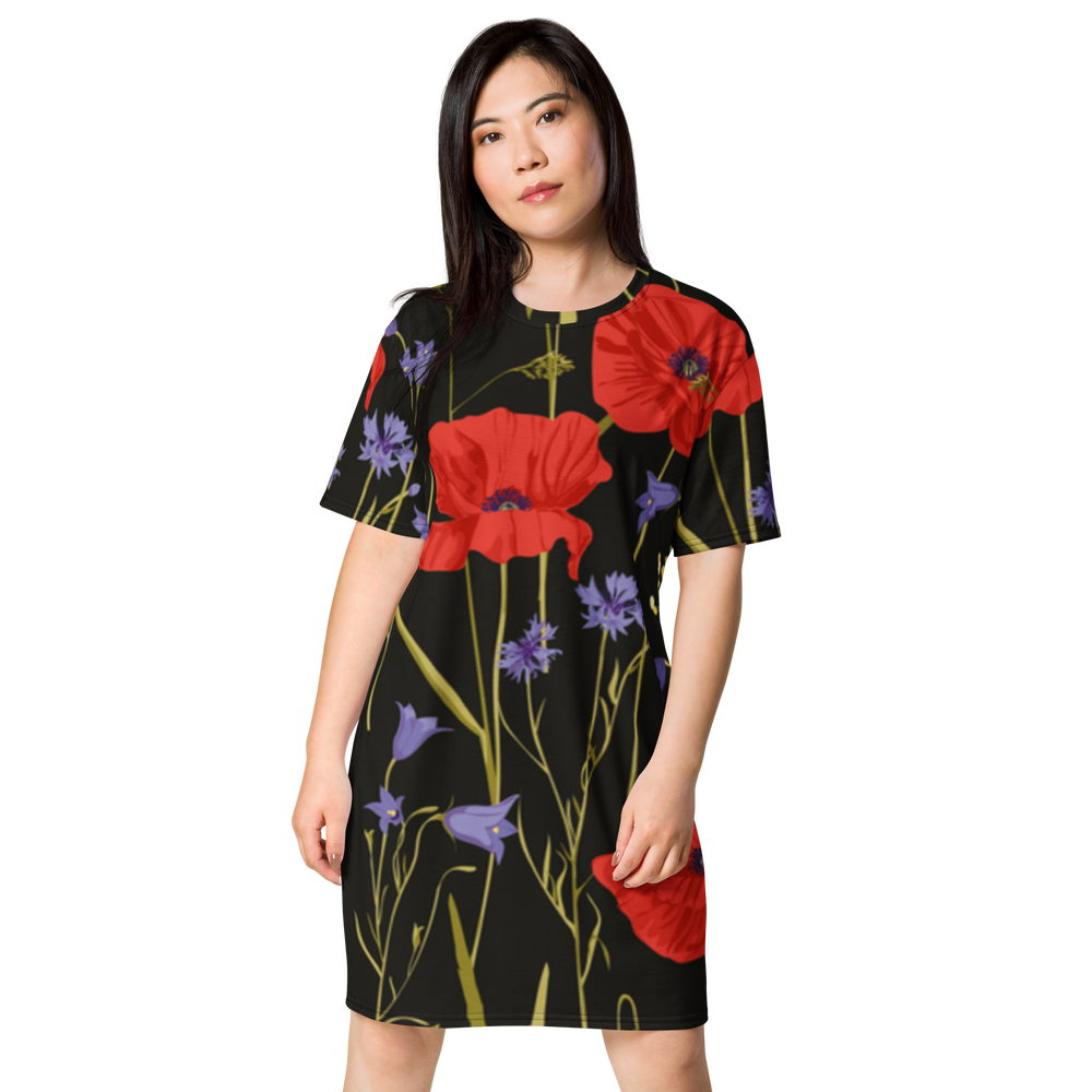 Premium T-Shirt Dress - Poppies