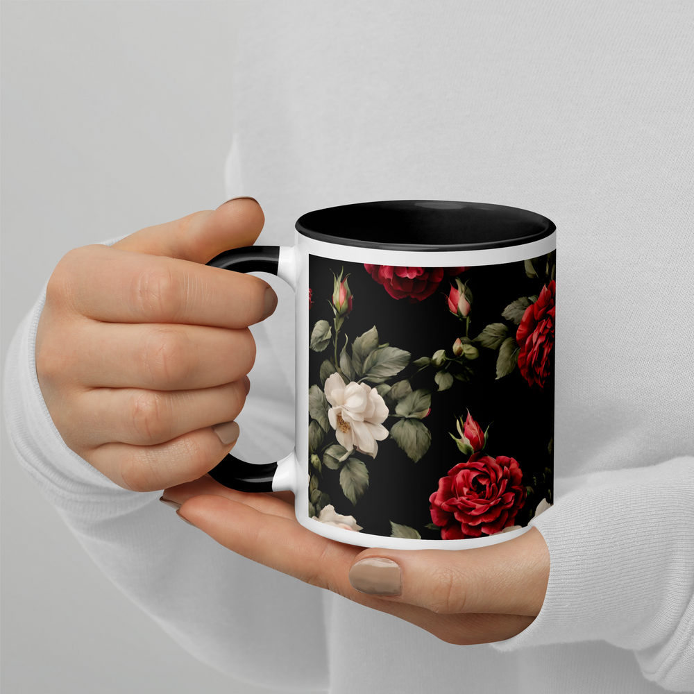 Mug with colored interior - Vintage Roses, black
