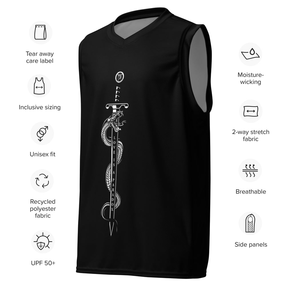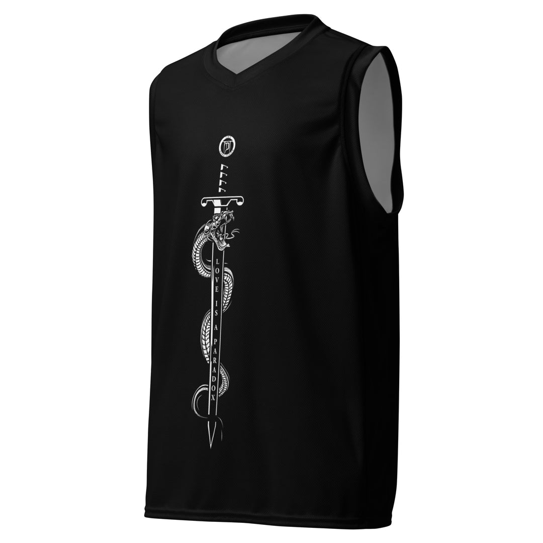 Recycled unisex basketball jersey - Snake and Sword, Paradox