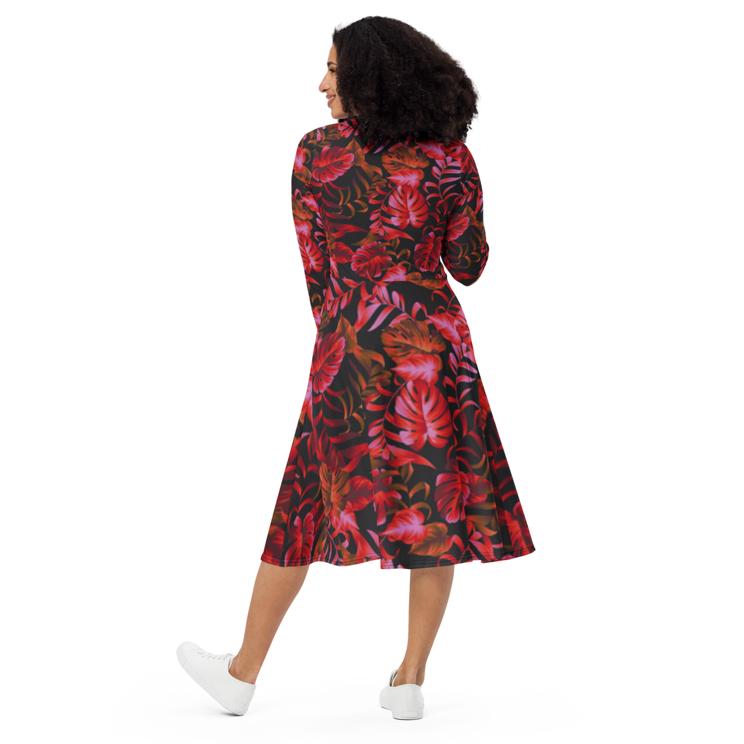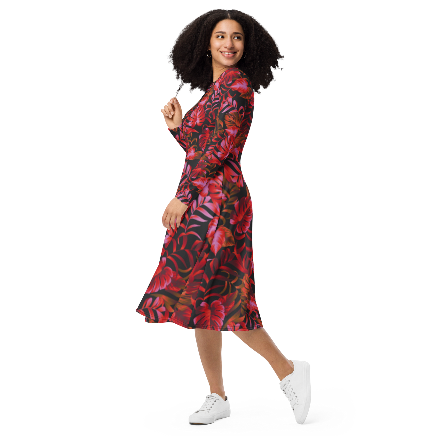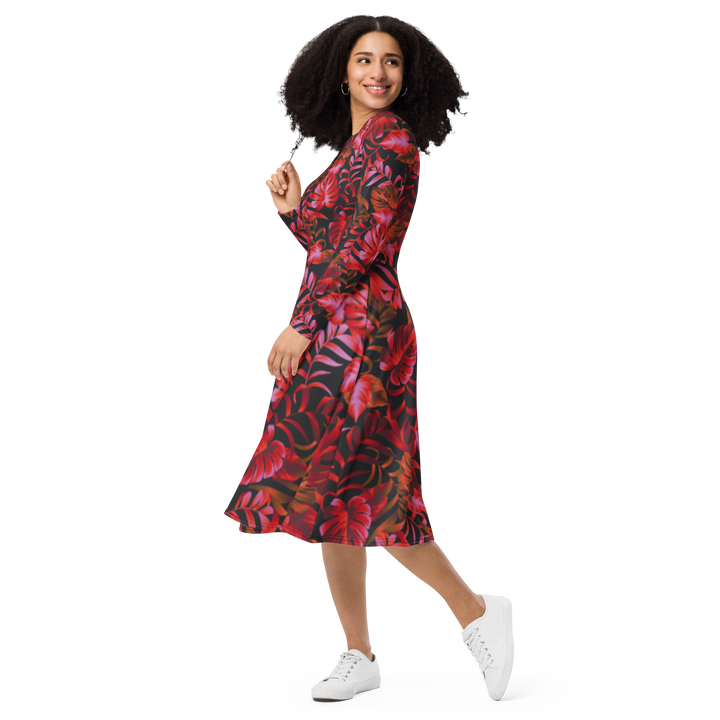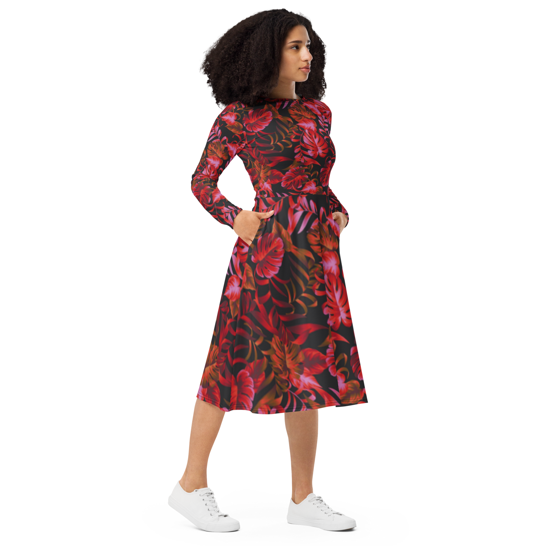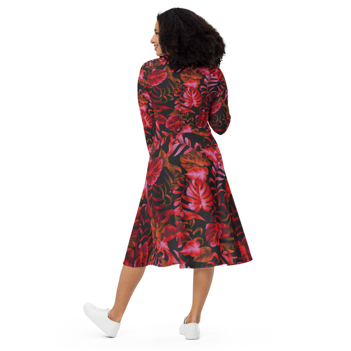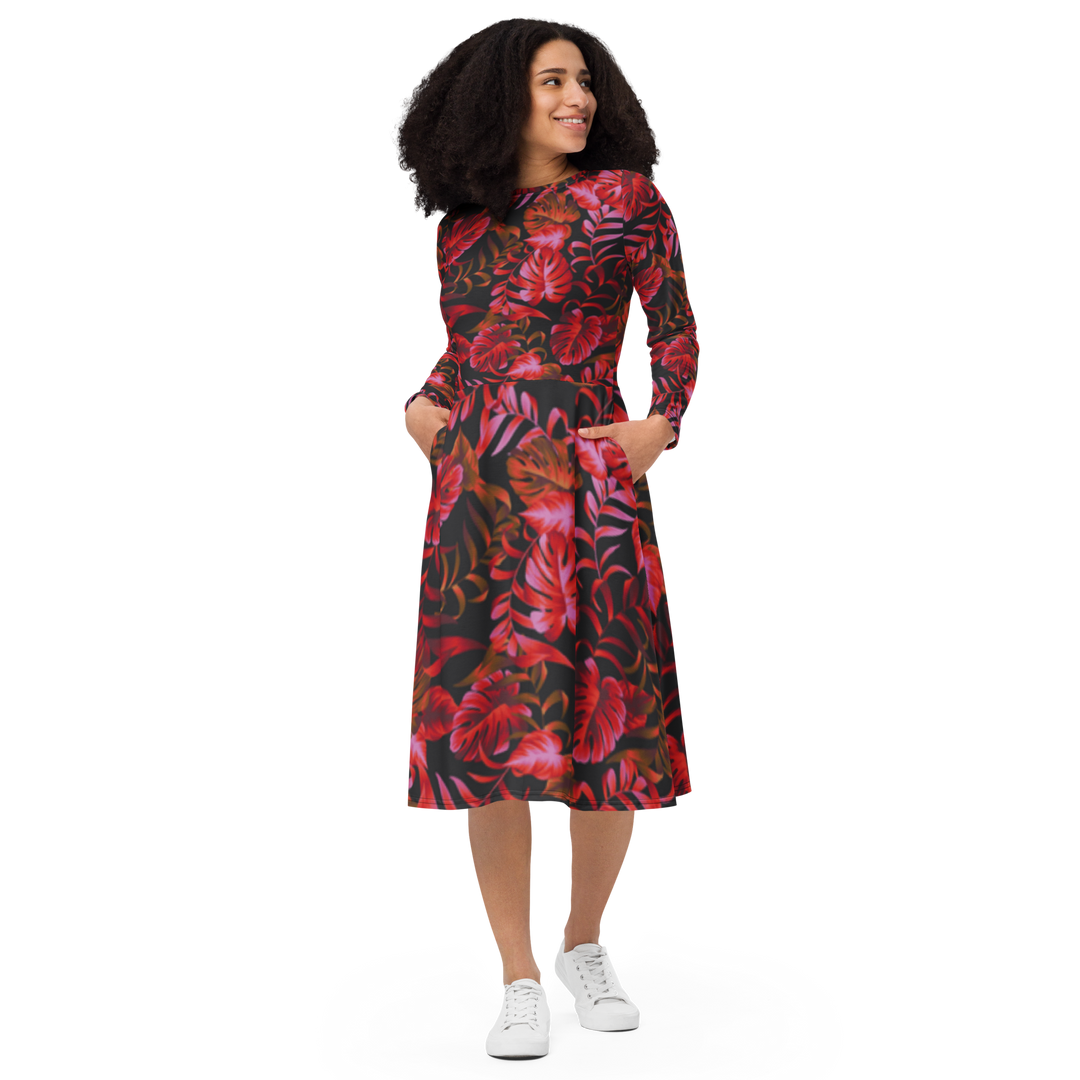 Langärmliges Midikleid mit Taschen - Blätter der Nacht