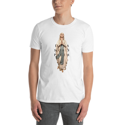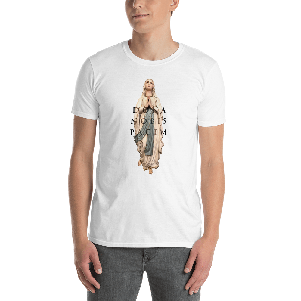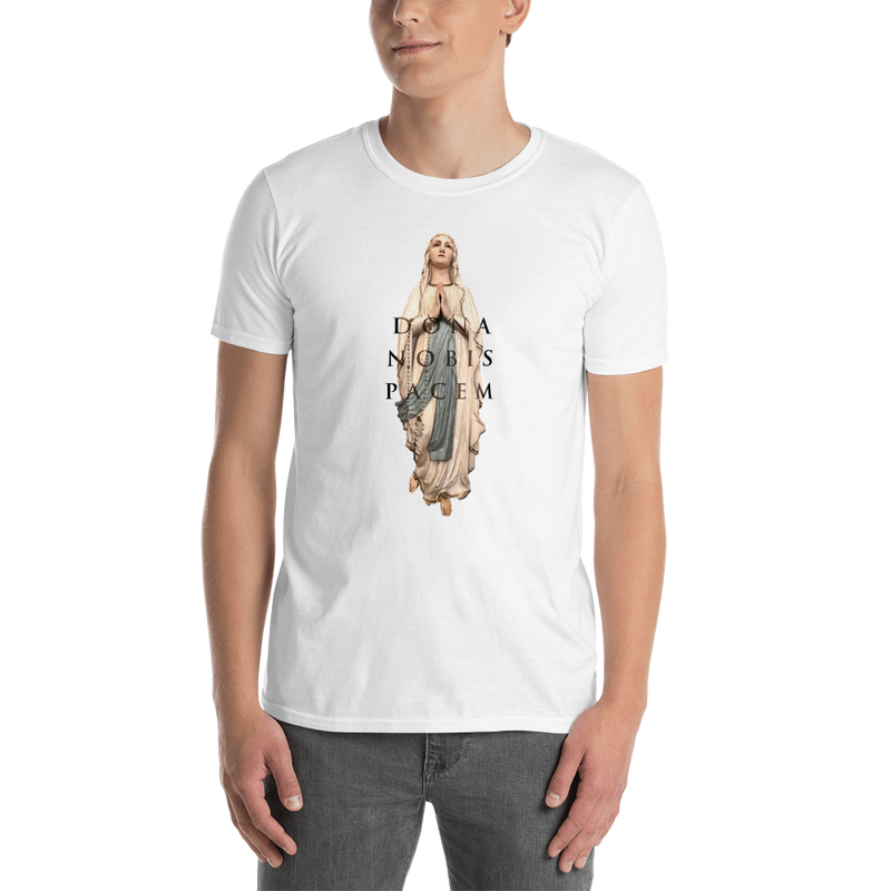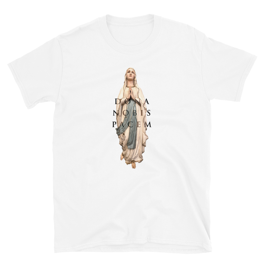 Das Motiv der Maria wurde von Billy in der Kirche Notre Dame in Val Cenis, Frankreich während der Dreharbeiten zum Musikvideo Ultraviolet Hearts geschossen. Die Textzeile "Dona Nobis Pacem" aus dem Song ziert das Design. Im Nacken des Shirt ist das Dark Tenor Wappen elegant in schwarz aufgebracht.