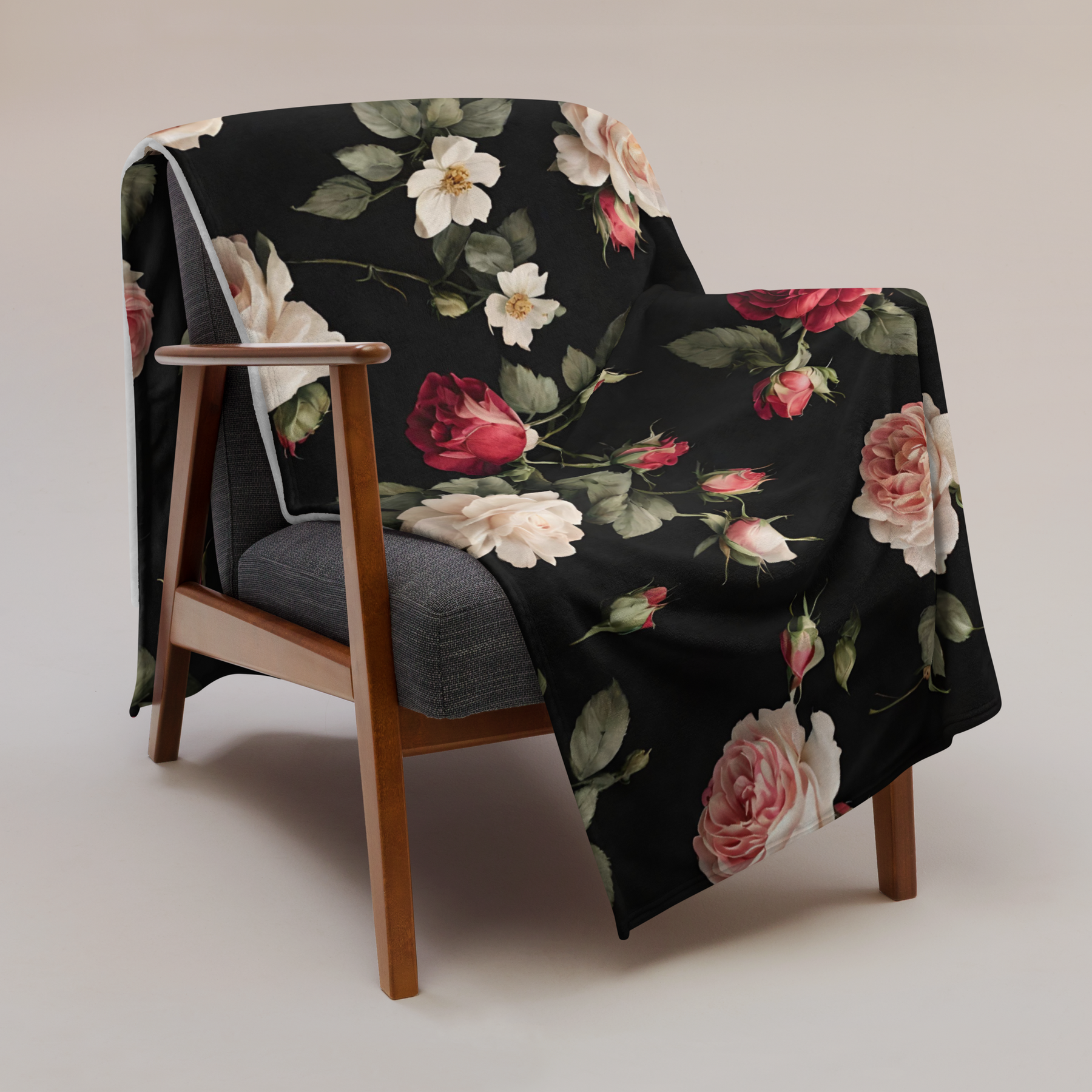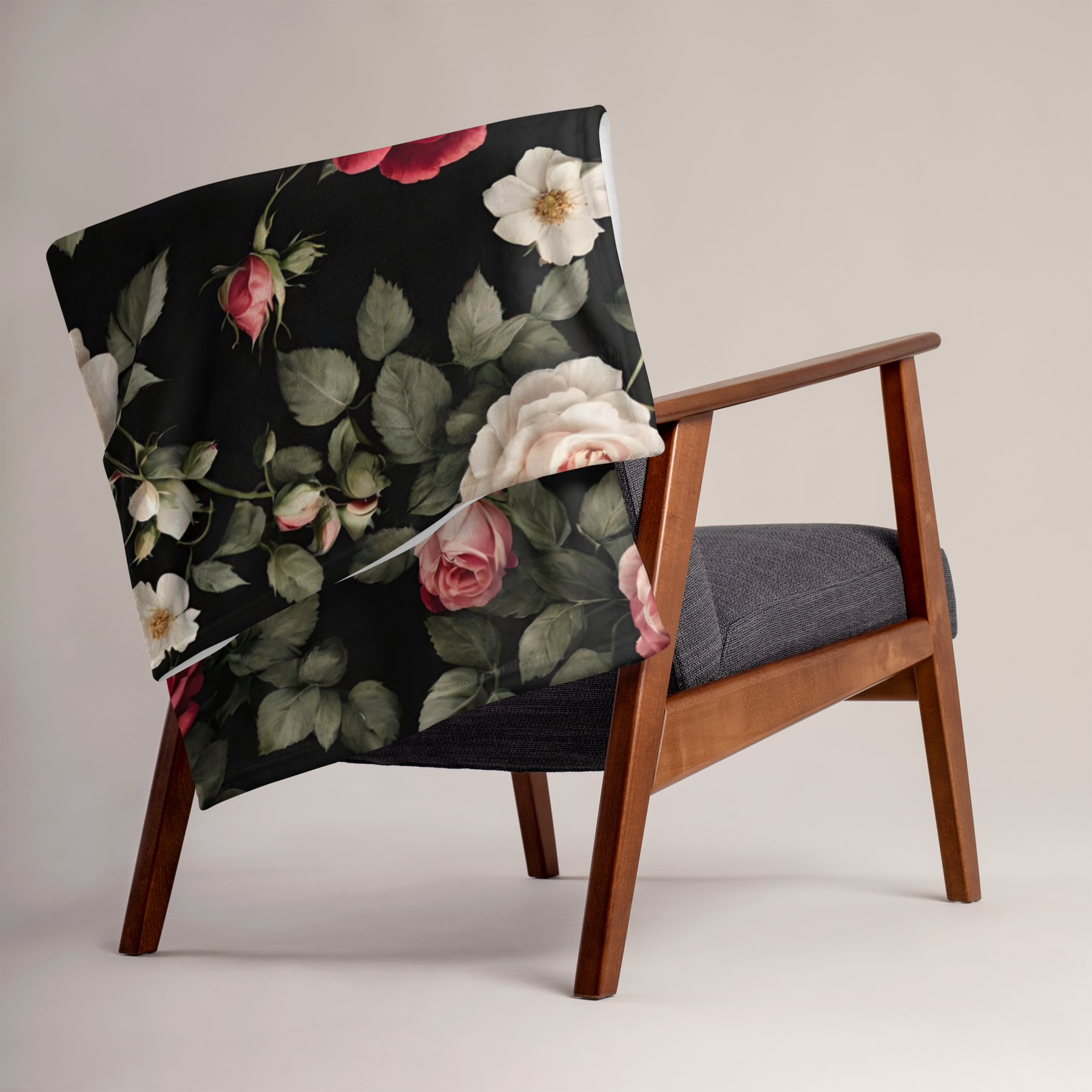 Tagesdecke - Vintage Roses, schwarz